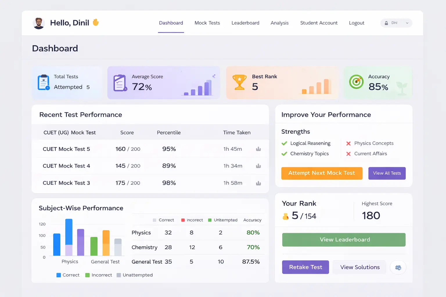 These Mock tests are very close to the actual CUET level. The performance insights show exactly where I need to improve.